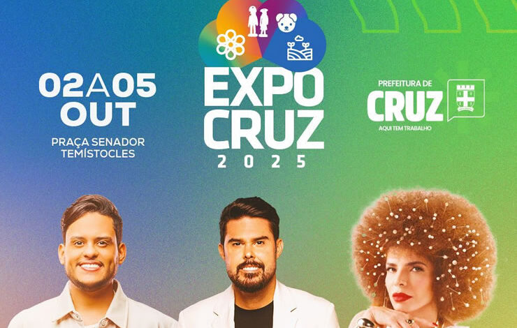 Grandes shows vão agitar as noites da ExpoCruz deste ano. A Prefeitura de Cruz, por meio da Secretaria de Cultura e Turismo, preparou uma grade de atrações especial, pensada para agradar a toda a família. A programação cultural da festa acontecerá nos três primeiros dias do evento, a partir do dia 2 de outubro, e contará com uma diversidade de ritmos.