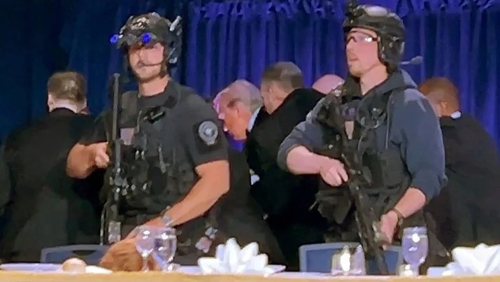 Donald Trump é retirado às pressas de evento após alerta de tiros em Washington Relatos indicam que agentes chegaram a gritar “tiros disparados” durante o jantar. Um suspeito foi detido e está sob custódia das autoridades. Até o momento, não há indícios da presença de outros atiradores.